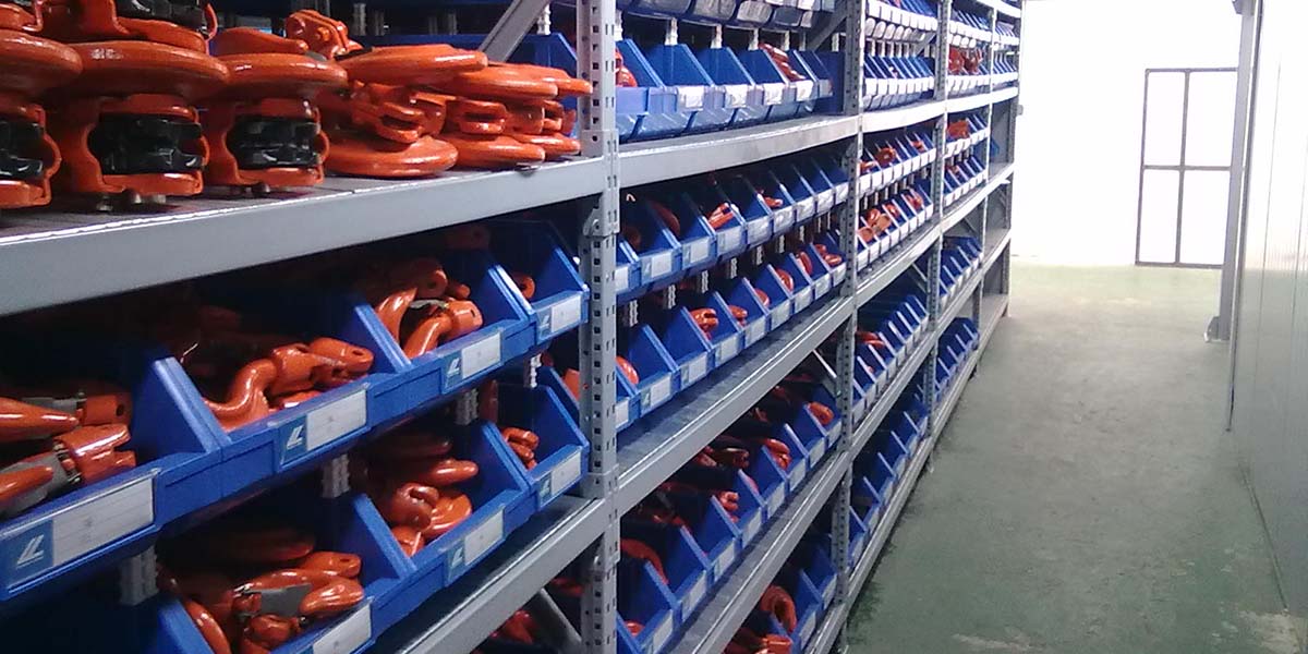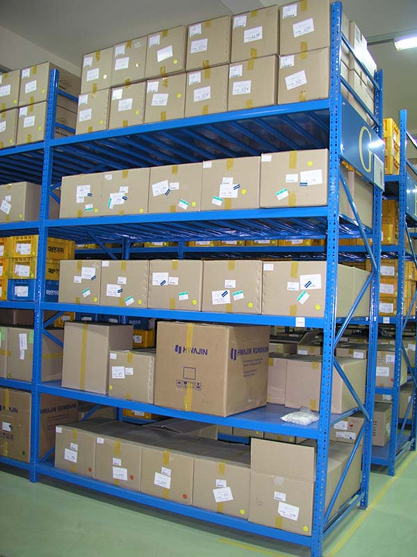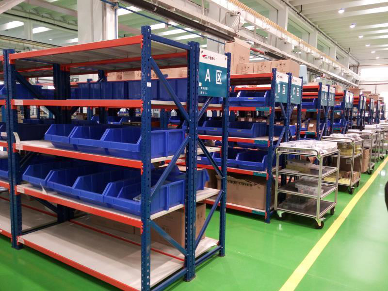 擱板式貨架:拆裝方便,通常用于人工存取,可搭配零件盒或周轉箱使用。層板高度可以50mm-75mm距離調節(jié)。常規(guī)貨架均布載荷200kg/層--800kg/層。
